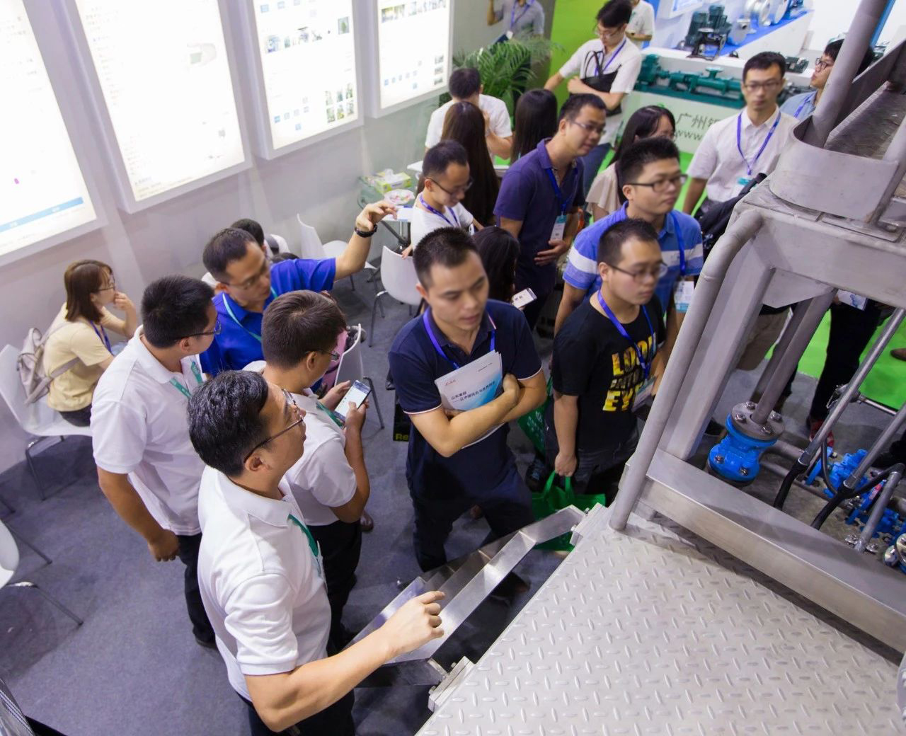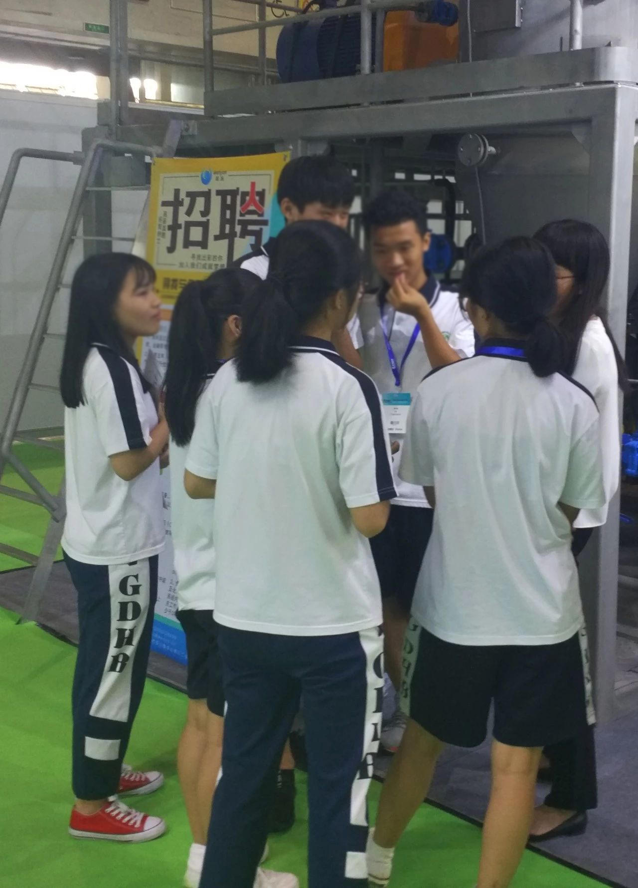 闻扬展位火爆的场面引来了一群环保专业的学生